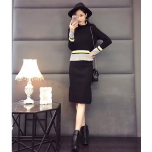 • 샤넬 CHANEL 2024 SS 스트라이프 로고 니트 여성 원피스 커스텀급