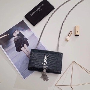 • 생로랑 악어가죽무늬 금속로고 태슬장식 체인 크로스백 커스텀