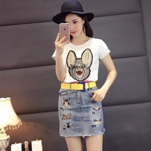 • 구찌 캐릭터 자수 반팔티 캐릭터 청치마 세트