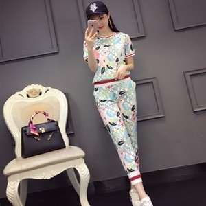 • 구찌 2019 SS 캐릭터 삼선 반팔티 바지 여성 세트