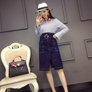 • 디올 스트라이프 카라 긴팔 여성 셔츠 청치마 세트