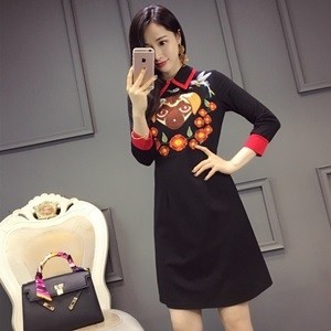 • 구찌 캐릭터 자수 블랙 카라 긴팔 여성 원피스