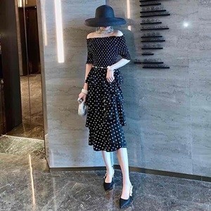 • 디올 2019 SS 땡땡이 러플 주름 여성 원피스