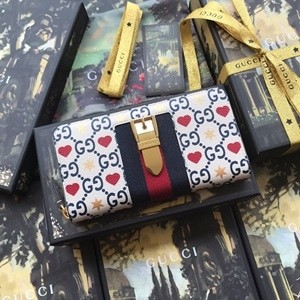 • 구찌 2019 SS 실비 하트 프린트 지퍼 장지갑 476084