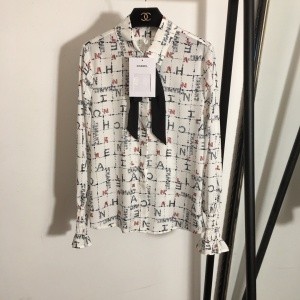 • 샤넬 2020 SS 캐릭터 프린트 여성 긴팔 셔츠