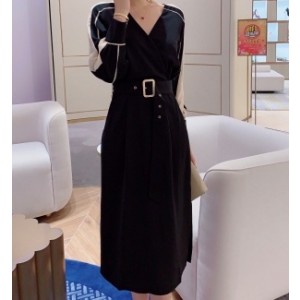 • 샤넬 CHANEL 2020 SS 스트라이프 벨트 긴팔 여성 원피스