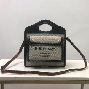 • 버버리 BURBERRY 2020 SS 트라이톤 캔버스 레더 포켓 토트백 80324371 커스텀급
