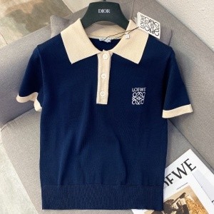 • 로에베 LOEWE 2021 SS 로고 카라 니트 투톤 여성 반팔티 커스텀급