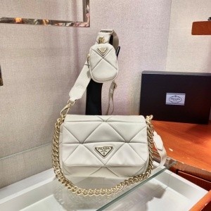 • 프라다 PRADA 2021 SS 나파 패치워크 화이트 숄더백 1BD292 커스텀급