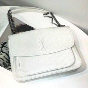 • 생로랑 SAINT LAURENT 2021 SS 로고 포켓 화이트 빈티지 체인 숄더백 2829 커스텀급