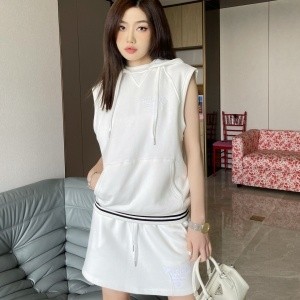 • 프라다 PRADA 2022 SS 블랙라인 로고 후드 여성 민소매티 스커트 세트 커스텀급