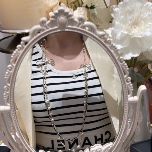 • 샤넬 CHANEL 2022 SS 캐릭터 진주 리본 체인 여성 롱목걸이 커스텀급
