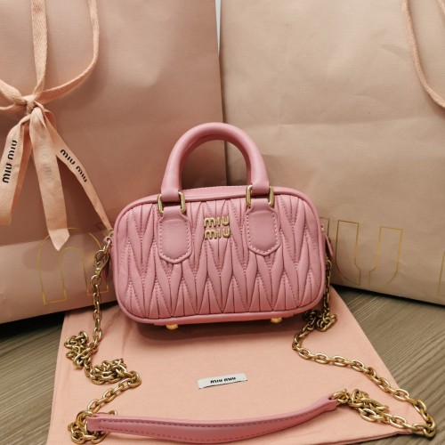 • 미우미우 MIUMIU 2023 SS 마틀라쎄 미니 토트 탑 핸들백 핑크 5BP077 커스텀급