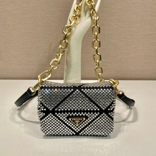 • 프라다 PRADA 2023 SS 크리스털 새틴 미니백 실버 1BD329 커스텀급