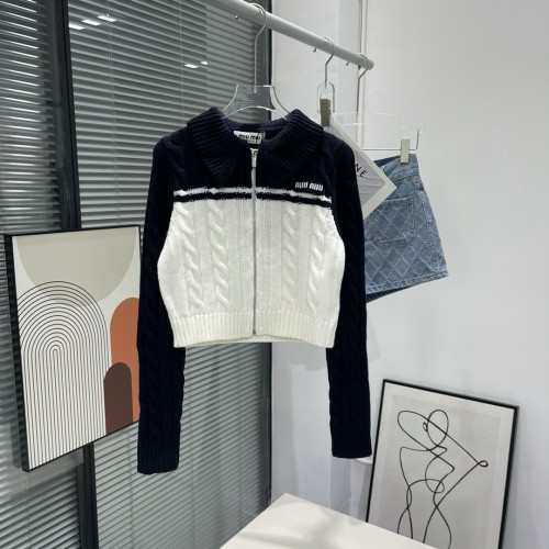 • 미우미우 MIUMIU 2023 SS 투톤 카라 로고 여성 짚업 상의 커스텀급
