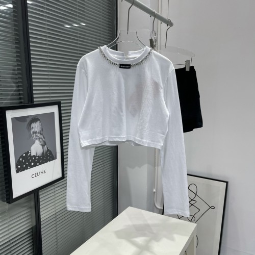 • 미우미우 MIUMIU 2023 SS 캐릭터 패치로고 라운드넥 여성 긴팔티 커스텀급