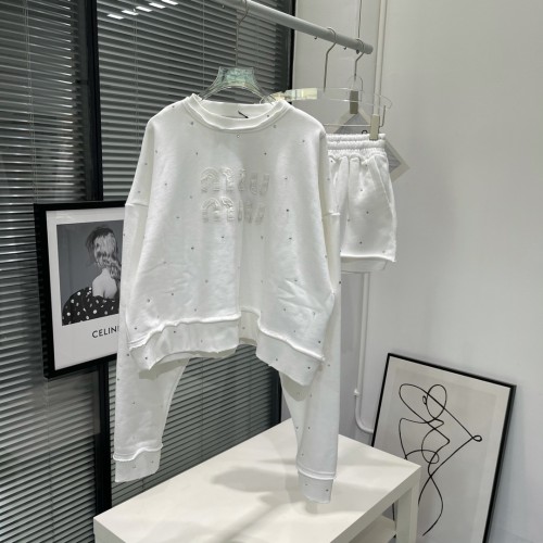 • 미우미우 MIUMIU 2023 SS 캐릭터 패치로고 큐빅 긴팔티 반바지 여성 세트 커스텀급