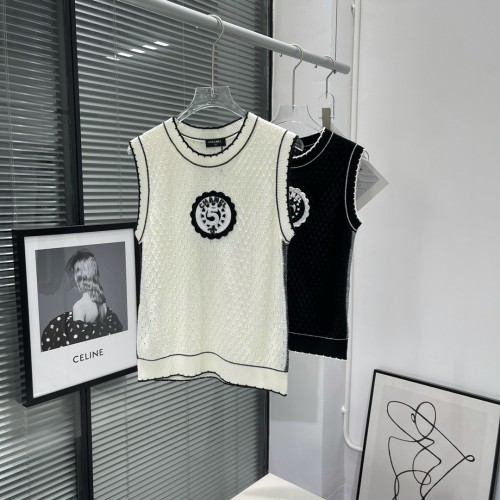 • 샤넬 CHANEL 2023 SS 캐릭터 패치로고 니트 여성 민소매티 커스텀급