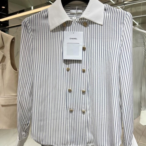 • 샤넬 CHANEL 2023 SS 카라 투톤 스트라이프 여성 긴팔셔츠 커스텀급