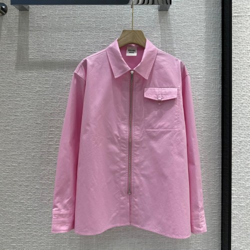 • 에르메스 HERMRS 2023 SS 카라 포켓 핑크 여성 긴팔 셔츠 커스텀급