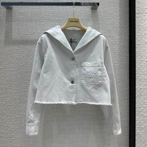 • 미우미우 MIUMIU 2023 SS 패치로고 빈티지 여성 데님 상의 커스텀급