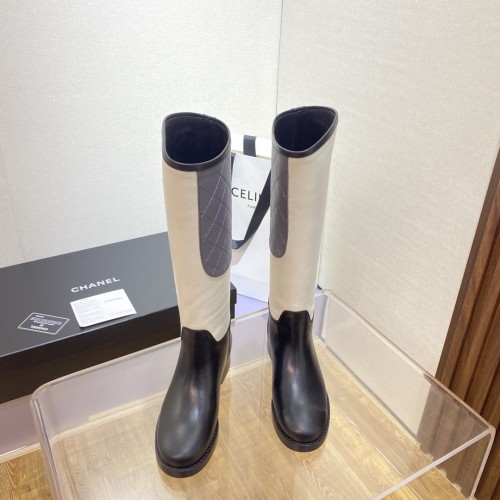 • 샤넬 CHANEL 2023 SS 퀄팅 투톤 아이보리 여성 롱부츠 커스텀급