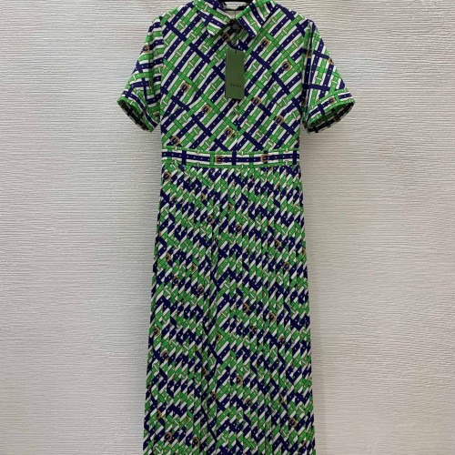 • 구찌 GUCCI 2024 SS 캐릭터 체크무늬 카라 반팔 여성 원피스 커스텀급