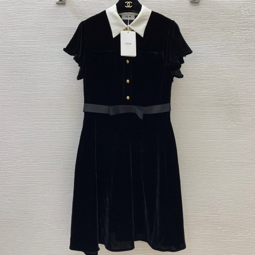 • 셀린느 CELINE 2024 SS 카라 벨벳 리본벨트 여성 원피스 커스텀급