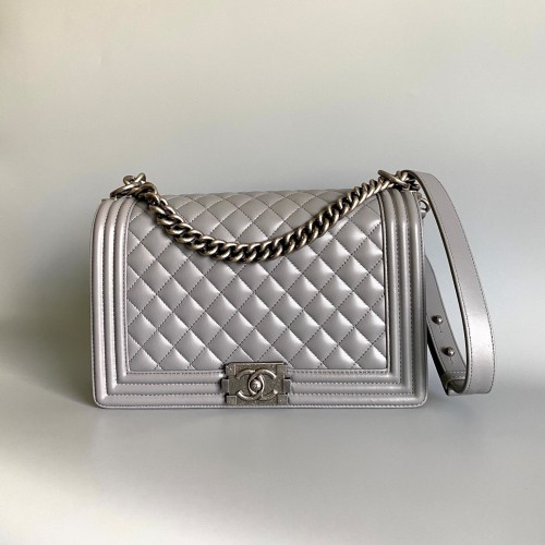 • 샤넬 CHANEL 2024 SS 램스킨 그레이 빈티지 실버메탈 보이백 뉴라지 커스텀급