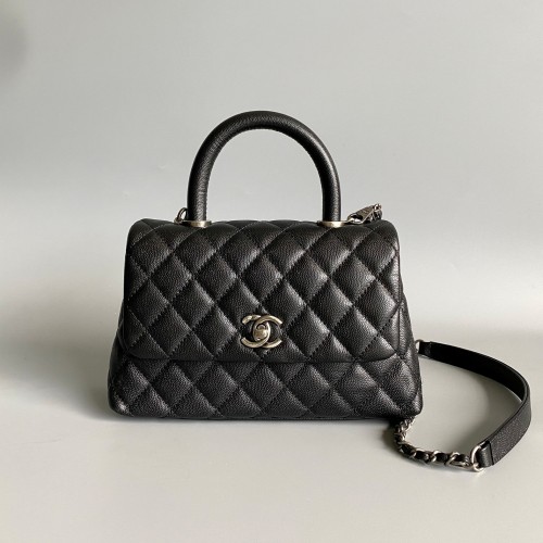 • 샤넬 CHANEL 2024 SS 캐비어 퀄팅 올블랙 코코 실버메탈 스몰 핸들백 AS186 커스텀급