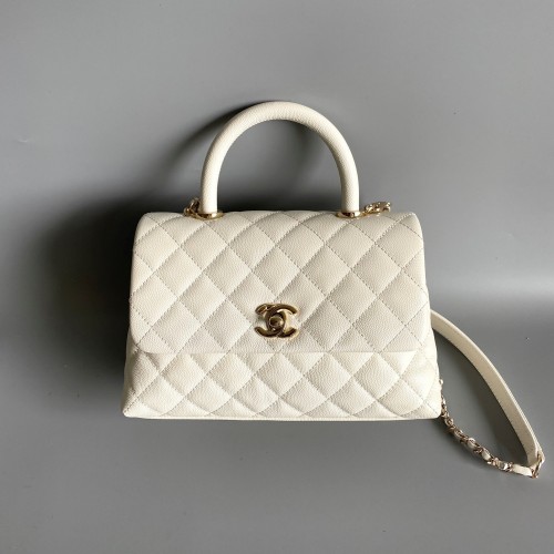 • 샤넬 CHANEL 2024 SS 캐비어 퀄팅 올화이트 코코 스몰 핸들백 AS186 커스텀급