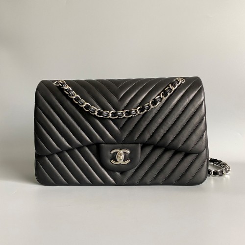 • 샤넬 CHANEL 2024 SS 램스킨 쉐브론 클래식 CF 블랙 실버메탈 플랩백 AS1113 커스텀급