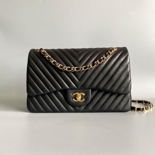 • 샤넬 CHANEL 2024 SS 램스킨 쉐브론 클래식 CF 블랙 골드메탈 플랩백 AS1113 커스텀급