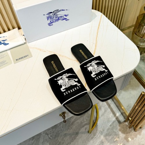 • 버버리 BURBERRY 2024 SS 로고 화이트자수 블랙 여성 슬리퍼 커스텀급