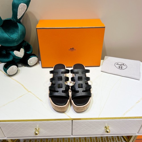 • 에르메스 HERMES 2024 SS 로고 투톤 블랙 여성 웨지힐 샌들 커스텀급