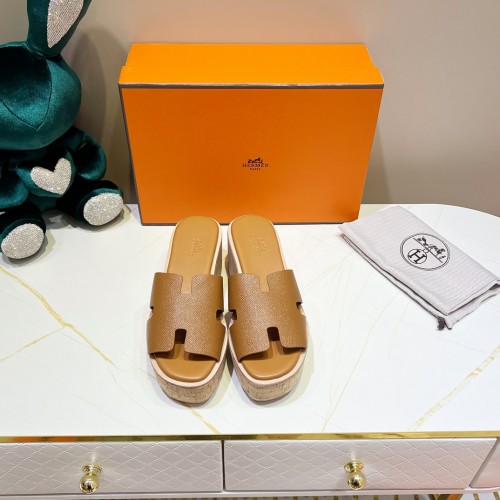 • 에르메스 HERMES 2024 SS H로고 카멜 여성 웨지힐 샌들 커스텀급