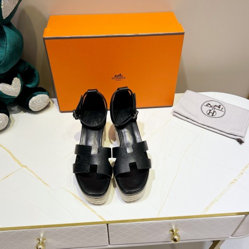• 에르메스 HERMES 2024 SS H로고 끈장식 블랙 여성 웨지힐 샌들 커스텀급