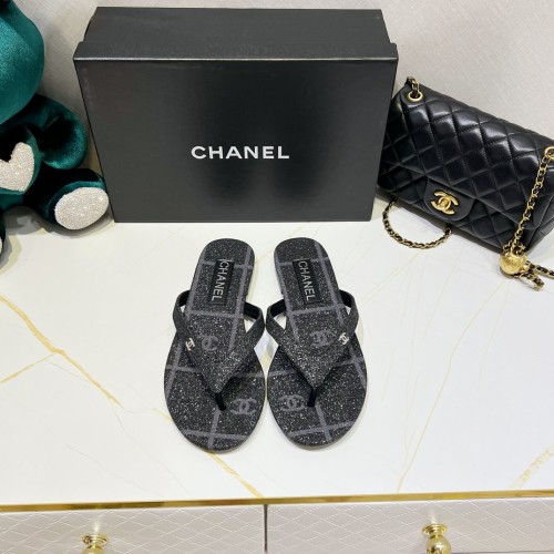 • 샤넬 CHANEL 2024 SS 패치로고 스팽글 블랙 여성 쪼리 커스텀급