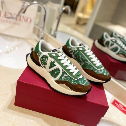 • 발렌티노 VALENTINO 2024 SS 캐릭터 로고 레이스 브라운그린 여성 스니커즈 커스텀급