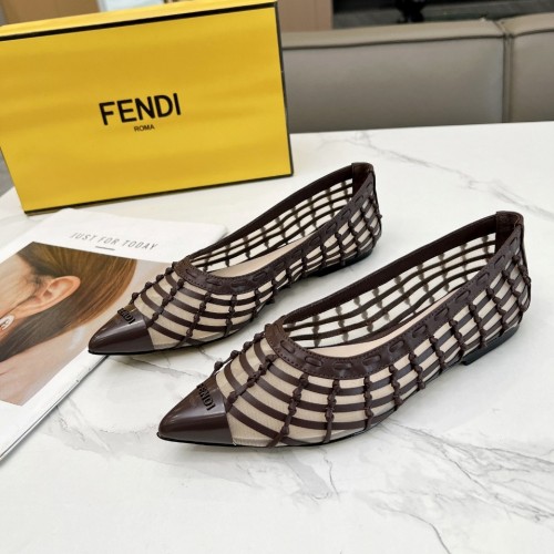 • 펜디 FENDI 2024 SS 캐릭터 로고 스트라이프 브라운 여성 플랫슈즈 커스텀급
