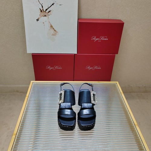 • 로저비비에 ROGER VIVIE 2024 SS 캐릭터 민무늬 블랙 여성 웨지힐 샌들 커스텀급