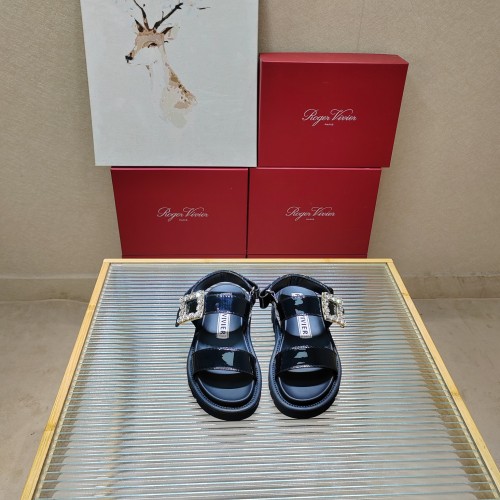 • 로저비비에 ROGER VIVIE 2024 SS 캐릭터 에나멜 블랙 여성 샌들 커스텀급