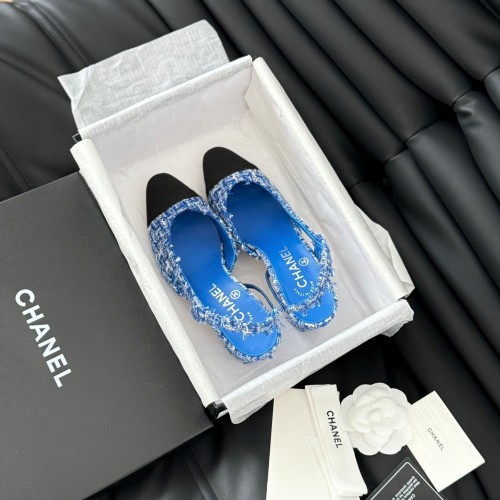 • 샤넬 CHANEL 2024 SS 캐릭터 로고 블루 트위드 블랙 여성 구두 커스텀급