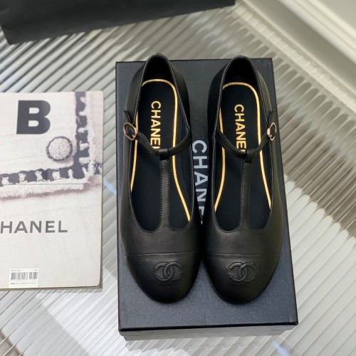 • 샤넬 CHANEL 2024 SS 캐릭터 로고 레더 올블랙 여성 로우힐 구두 커스텀급