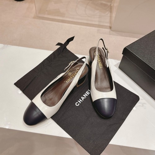 • 샤넬 CHANEL 2024 SS 캐릭터 로고 레더 올블랙 여성 로우힐 구두 커스텀급