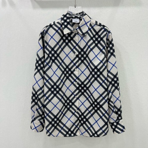 • 버버리 BURBERRY 2024 SS 빈티지 체크 블랙라인 카라 긴팔 여성 셔츠 커스텀급