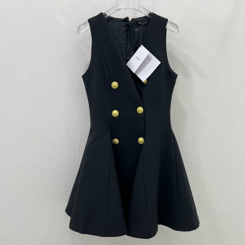 • 발망 BALMAIN 2024 SS 캐릭터 로고 단추 지퍼 블랙 여성 원피스 커스텀