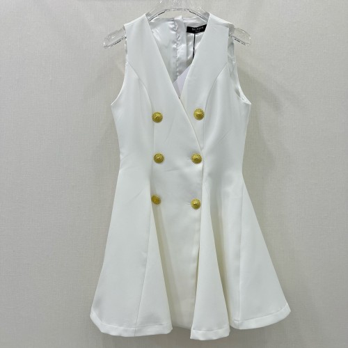 • 발망 BALMAIN 2024 SS 캐릭터 로고 단추 지퍼 화이트 여성 원피스 커스텀급