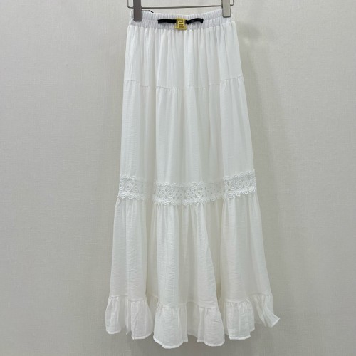 • 펜디 FENDI 2024 SS 캐릭터 벨트장식 시스루 레이스 프릴 화이트 여성 치마 커스텀급