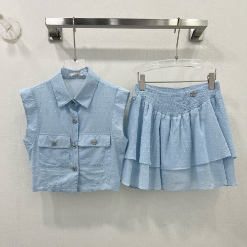• 디올 DIOR 2024 SS 캐릭터 로고 플라워 긴팔 셔츠 치마 블루 여성 세트 커스텀급